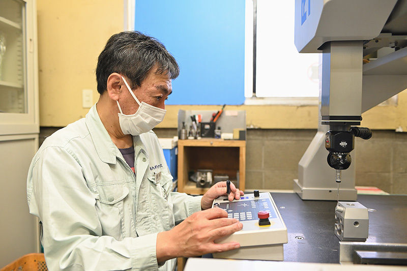 現在、私は品質管理を担当しています。具体的には、加工や仕上げが終わった部品の品質保証のために、不備がないかを三次元測定器などの機材を使って測定するという業務です。スムーズに測定できたり、不備を発見することで加工や仕上げ作業の改善ができたりしたときに大きな達成感を感じます。また、会社が手掛けた部品の品質保持に貢献できていることを誇りに思います。